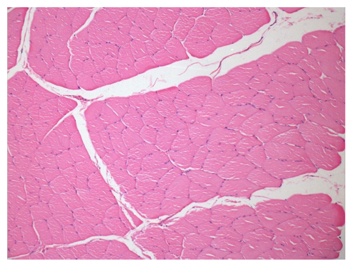 Через 1 місяць після ін'єкції Ендопілу 0,1 мл у правий претибіальний м'яз.