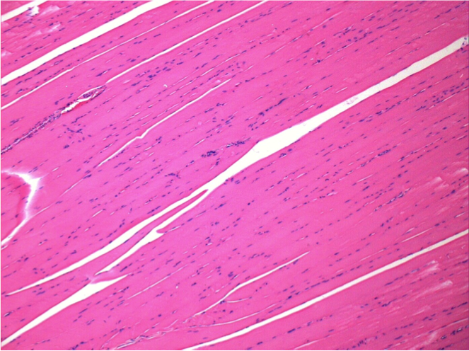 Через 1 місяць після ін'єкції Ендопілу 0,1 мл у правий претибіальний м'яз.